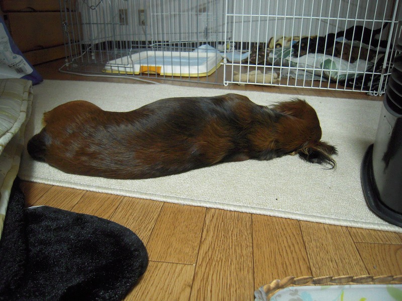 今日はまだ子犬が起きてない!全然激しく鳴いていない!