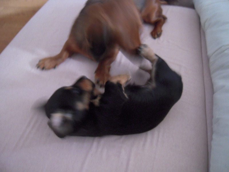 でも、相方は、「ロコが先にちょっかいだした!」と「なんでグリばかりいじめるん?!」と子犬をかばって途中で抱き上げるので、